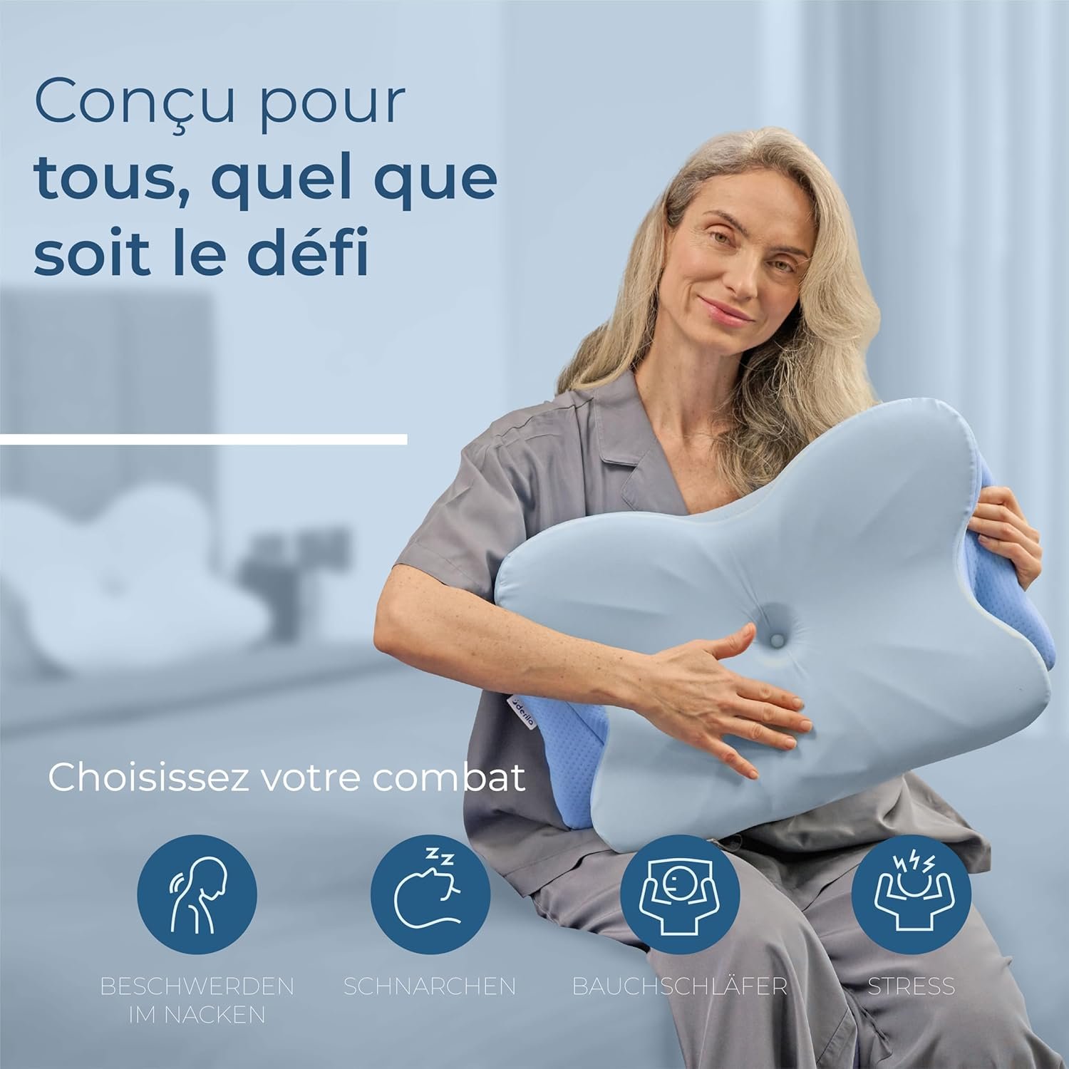Cet oreiller s’adresse aussi bien aux personnes souffrant de douleurs cervicales chroniques, de troubles du sommeil ou de ronflements persistants. Après deux années de recherche et développement, Derila a créé un oreiller polyvalent qui convient à toutes les positions de sommeil : dos, côté, ventre ou positions changeantes.